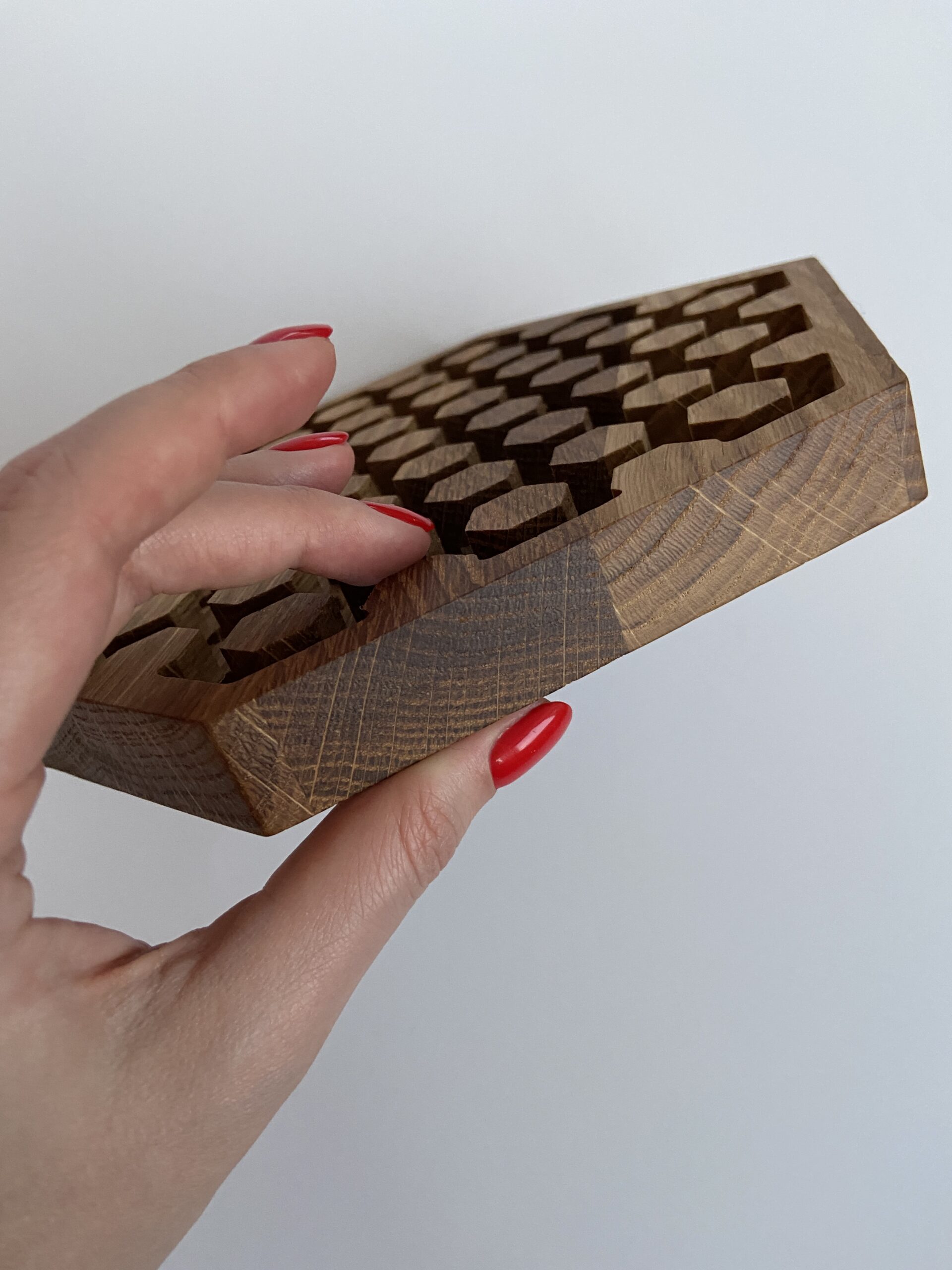 Each stand has its own unique carving pattern and, combined with the unique wood texture, makes each of our products exclusive.