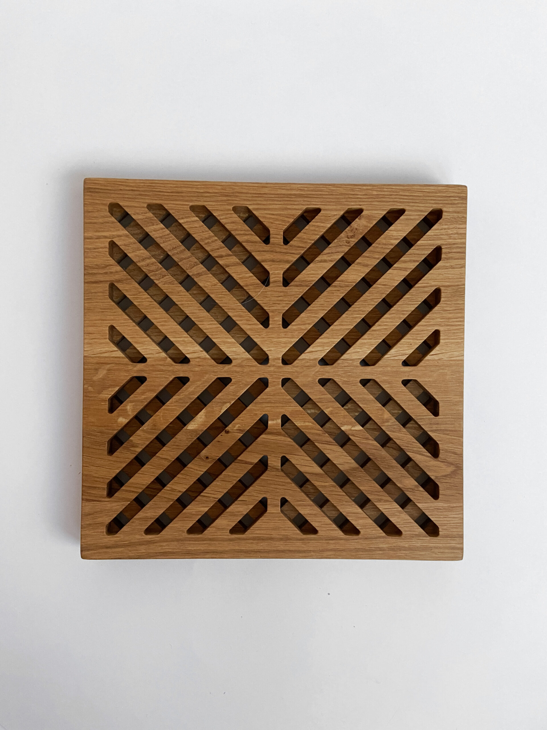Carved square hot stand made of American oak wood.