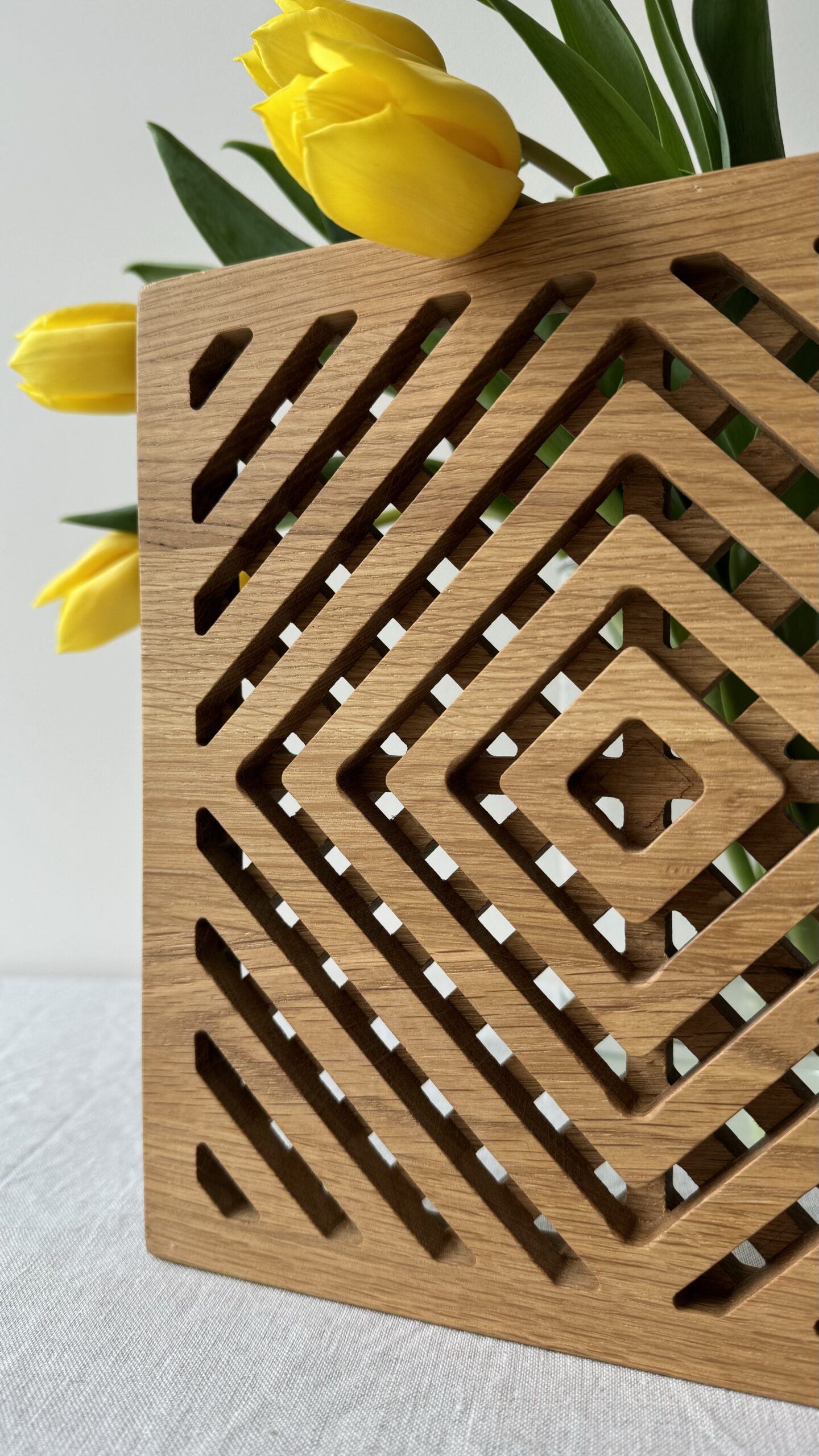 Each stand has its own unique carving pattern and, combined with the unique wood texture, makes each of our products exclusive.